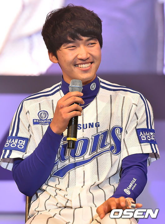 22일 오후 대구 북구 산격동 대구실내체육관에서 열린 삼성 라이온즈 '프로야구 최초 통합 4연패 기념 2014 팬 페스티벌'에서 토크 콘서트에서 박해민이 환하게 웃고 있다.