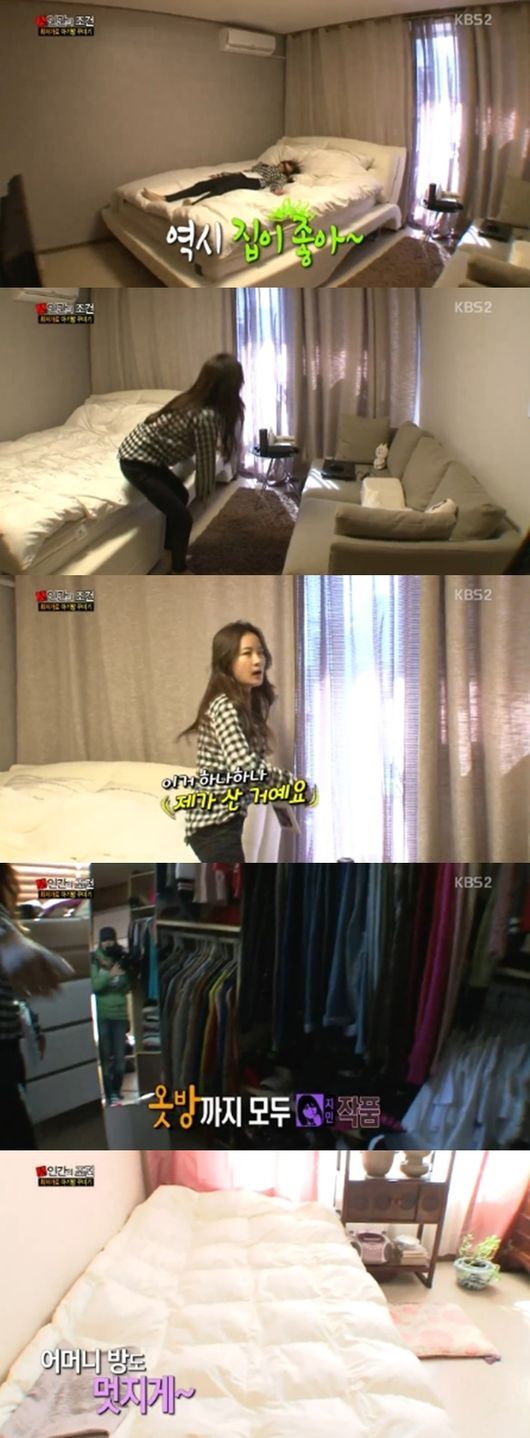 김지민은 자신의 집을 구석구석 소개하며 안방과 옷방, 엄마방 모두 자신이 고른 인테리어 소품으로 꾸몄다고 말했다.