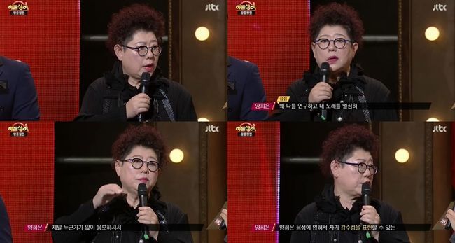 가수 양희은이 자신의 모창을 할 줄 아는 능력자들이 있었으면 좋겠다고 밝혀 눈길을 끌었다.