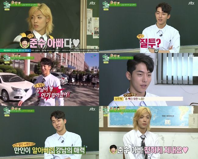 뿐만 아니라 여학생들이 강남을 향해 환호를 지르자 이마저도 남주혁은 질투를 했다. 주목할 만한 건 오직 자신을 향하던 여학생들의 환호성을 뺏긴 것 때문이 아닌, 자신만의 것이었던 강남을 빼앗긴 듯한 기분이 들었기 때문. 그는 "강남 형의 매력을 만인이 알게 된 기분이다. 내 것을 뺏긴 것 같다"고 질투를 드러내 또 한 번 보는 이들을 폭소케 했다.