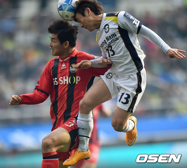 23일 오후 서울월드컵경기장에서 열린 FC서울과 성남FC의 '2014 하나은행 FA컵 결승전, 전반 성남 김동희가 헤딩슛을 시도하고 있다.