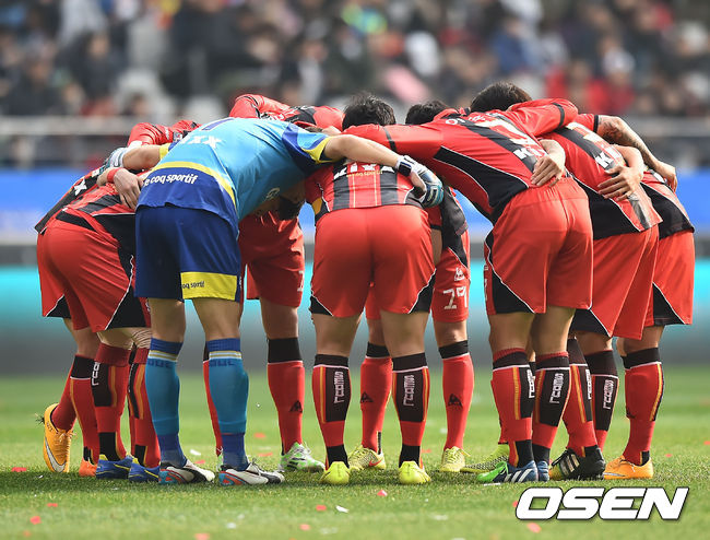 23일 오후 서울월드컵경기장에서 열린 FC서울과 성남FC의 '2014 하나은행 FA컵 결승전, 경기 전 서울 선수들이 필승의 각오를 다지고 있다.