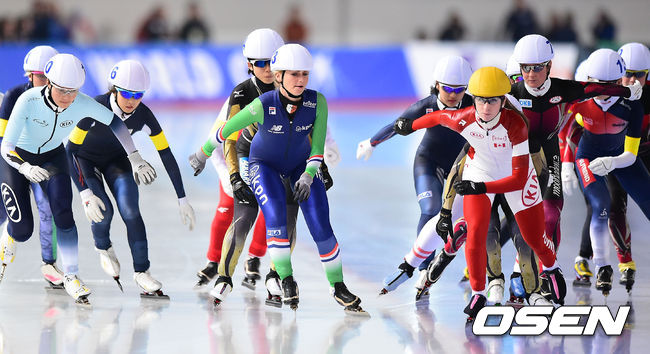 23일 서울 노원구 태릉 국제스케이트장에서 열리는 '2014~2015 ISU 스피드스케이팅 월드컵' 여자 매스 스타트 경기에서 선수들이 출발하고 있다.