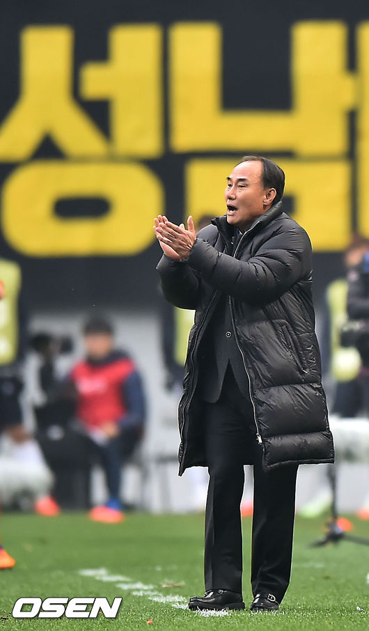 23일 오후 서울월드컵경기장에서 열린 FC서울과 성남FC의 '2014 하나은행 FA컵 결승전, 연장 전반 성남 김학범 감독이 박수를 보내고 있다.