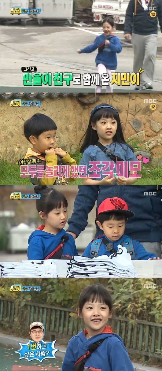 23일 오후 4시 50분 방송된 MBC '일밤-아빠어디가'에는 민율이의 친구 지민이가 대운동회에 등장한 모습이 담겼다.