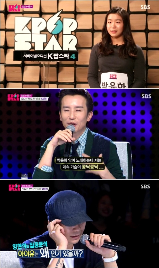 23일 오후 SBS 예능프로그램 '일요일이 좋다-K팝스타 시즌4'(이하 K팝스타4)가 첫 방송됐다. 시즌3에 이어 양현석 박진영 유희열이 심사위원으로 함께 했으며, 이번 시즌 첫 도입된 객원심사위원으로 본선 1라운드에 'K팝스타' 출신 가수 악동뮤지션 박지민 이하이 백아연 등이 자리했다.