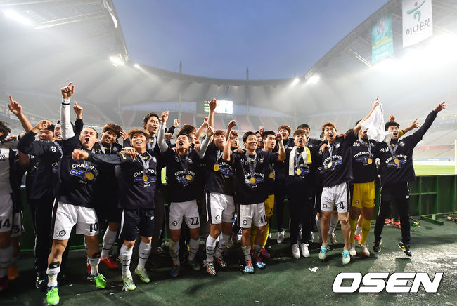 경기를 마치고 성남 선수들이 팬들 앞에서 환호하고 있다. / rumi@osen.co.kr