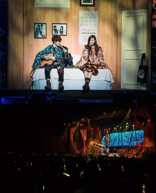 이번 악동뮤지션의 콘서트는 캠핑하듯 편안한 분위기에서 팬들에게 노래를 들려주고 싶다는 멤버들의 바람을 담아 ‘악뮤캠프’ 공연명처럼 숲속의 캠핑 분위기로 꾸며졌다. 공연장에 들어서자 마치 동화 속에 나올 법한 예쁜 나무 그림으로 장식된 스테이지가 눈길을 끌었다. 공연이 시작되자 마치 캠핑장 관리소에서 안내방송을 하는 듯한 안내 멘트가 흘러나와 팬들을 ‘악뮤캠프’로 초대했다.