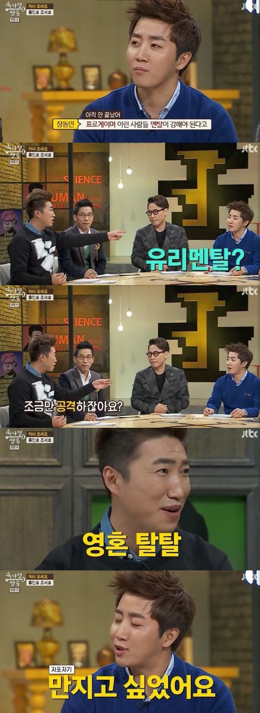 장동민이 홍진호를 유리멘탈의 소유자라고 칭했다.