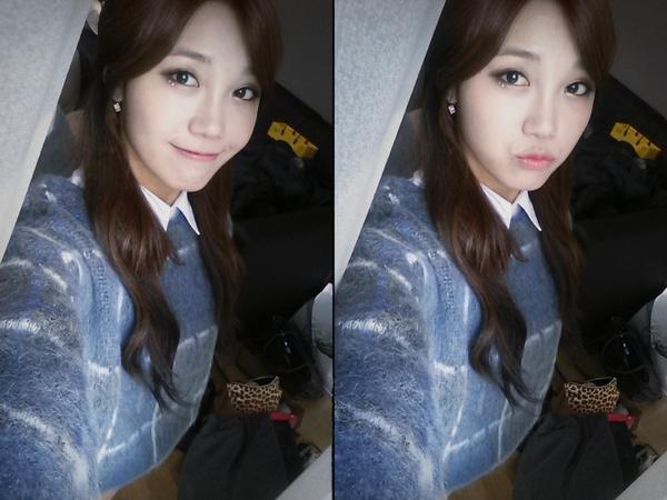 정은지는 23일 오후 에이핑크 공식 트위터를 통해 “까꿍 다들 ‘러브’ 잘 듣고 있어요? 잠이 안온다. 다들 너무 고마워요”라는 글과 함께 사진 한 장을 게재했다.