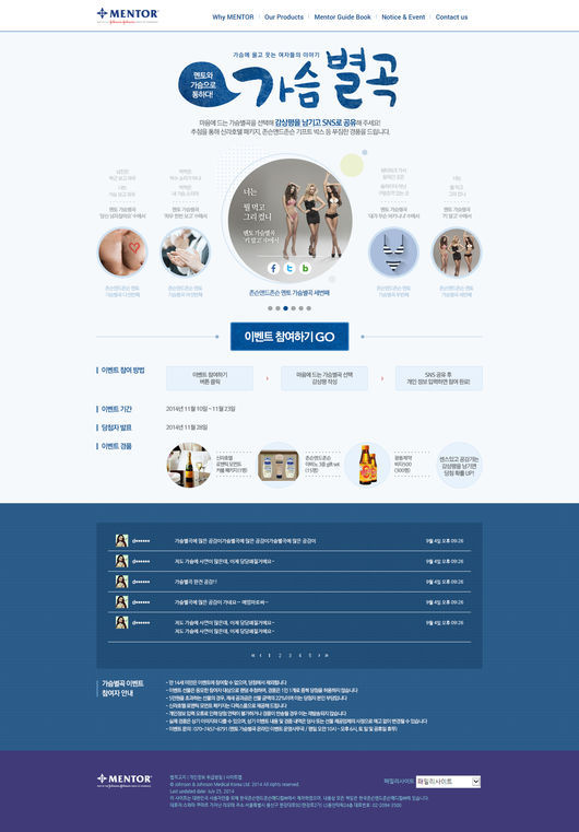 존슨앤드존슨 브랜드 계열 중 하나인 세계적인 가슴 보형물 브랜드 멘토(www.beautifulmentor.co.kr)가 브랜드 사이트 오픈을 기념해 이달 28일까지 '가슴별곡 SNS공유 이벤트'를 진행한다.