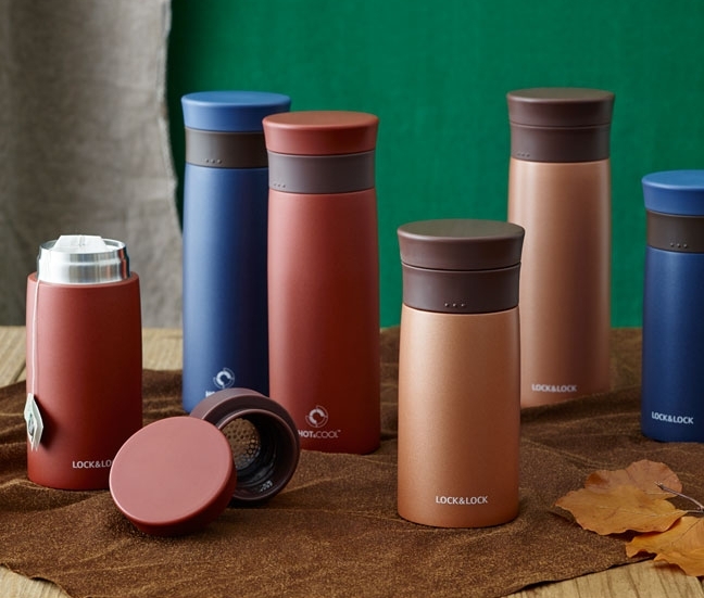 밀폐용기로 유명한 락앤락에서 선보인 '카페 텀블러'는 우수한 밀폐력으로 보온 보냉 효과는 물론, 거꾸로 들어도 물이 새지 않는다. 따라서 가방에 넣고 다녀도 안심하게 사용이 가능하고 탈 부착이 가능한 스테인리스 스틸 차망을 내장. 잎차나 티백을 우려 마시기에도 편리한 제품이다.