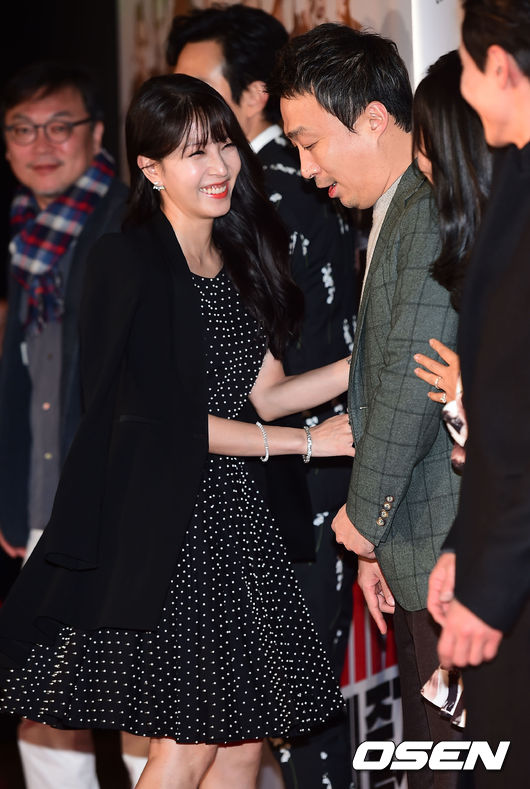24일 오후 서울 왕십리CGV에서 열린 영화 '빅매치' VIP 시사회에서 보아가 이성민에게 장난을 치고 있다.