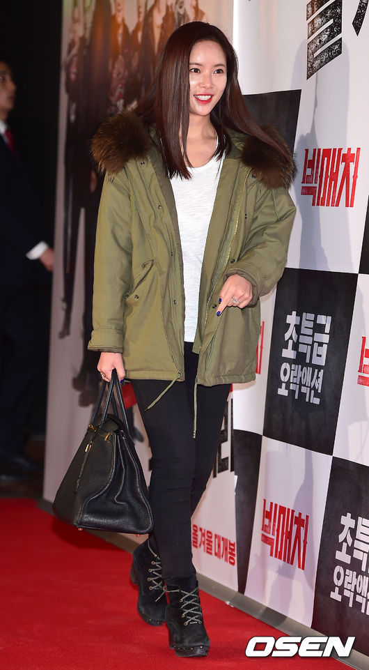24일 오후 서울 왕십리CGV에서 열린 영화 '빅매치' VIP 시사회에서 배우 황정음이 참석해 포즈를 취하고 있다.