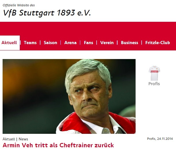독일 분데스리가 슈투트가르트의 아르민 베(53) 감독이 경질됐다.