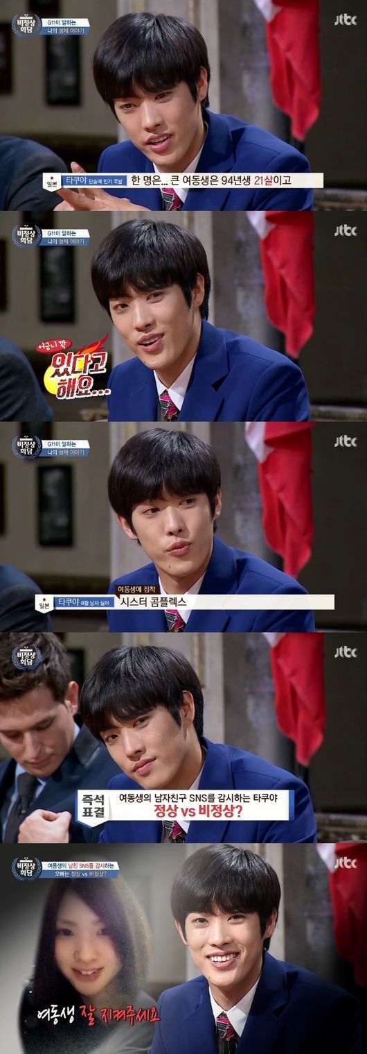 타쿠야는 이어 학창시절 별명이 ‘시스콤’이었음을 고백, 둘째 동생에게 남자친구가 있다고 전했다. 그러면서 타쿠야는 “별로 기분이 안 좋았다. 여동생 몰래 SNS를 검색해봤다. 외모는 저보다 떨어지는 것 같다. B형 남자더라. 마음에 안 든다”고 거침없이 말해 웃음을 자아냈다.
