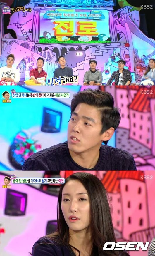 또한 이날 방송에는 군대에 간 남자 친구를 기다려야하는 지를 놓고 고민에 빠진 20대 여성이 출연했다. 만난지 949일이나 된 남친이 현재 군대에 가 있는데, 결혼까지 생각하고 있지만 주변에서는 헤어지는 것이 낫다는 의견이 지배적이라는 것.