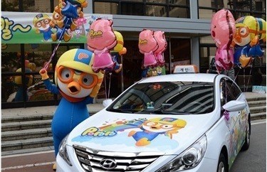 서울시는 25일부터 내년 5월까지 개인택시 20대 외관을 뽀로로 캐릭터로 포장한 '뽀로로택시'를 운행한다고 밝혔다. 요금은 일반 택시와 동일하다.