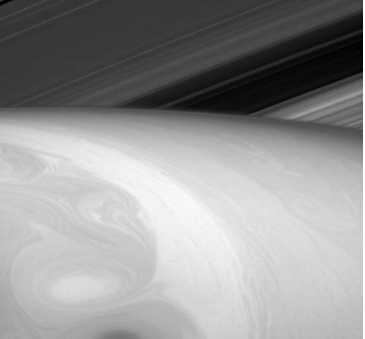 공개된 사진 속에서 녹은 크림처럼 보이는 것이 토성의 구름이다. 이런 상황은 토성이 육각형 구름을 만들어내 극소용돌이를 일으키는 것으로 토성 북극에 형성되는 극소용돌이는 지름이 3만km를 넘는다. 지구 적도 반지름이 6378km라는 것을 비교한다면 그 규모와 크기는 가공할 수준이다.