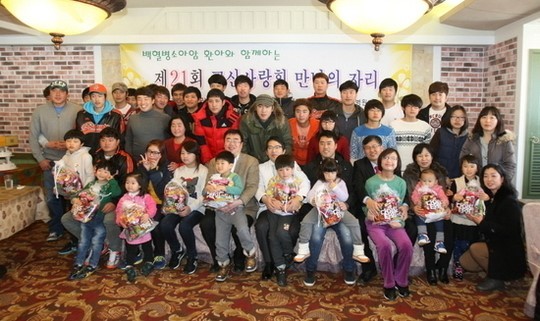 2013년 소아암 환아를 방문한 롯데 선수단.