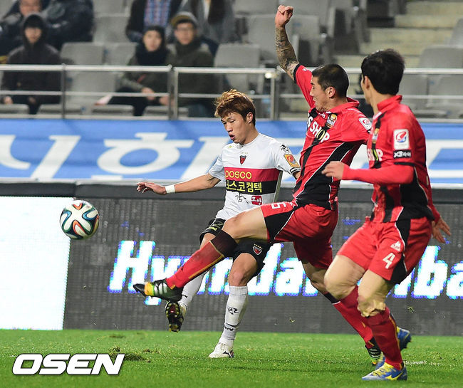 26일 오후 서울월드컵경기장에서 열린 2014 K리그 클래식 FC 서울과 포항 스틸러스의 경기 후반 김승대가 문전으로 볼을 올려주고 있다.