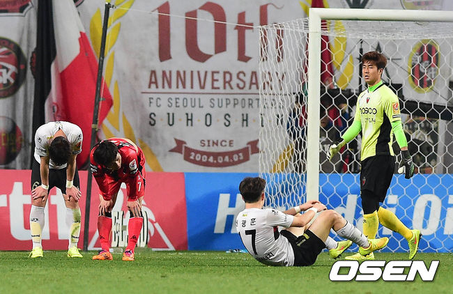 26일 오후 서울월드컵경기장에서 열린 2014 K리그 클래식 FC 서울과 포항 스틸러스의 경기 종료 후 선수들이 지친 표정을 짓고 있다.