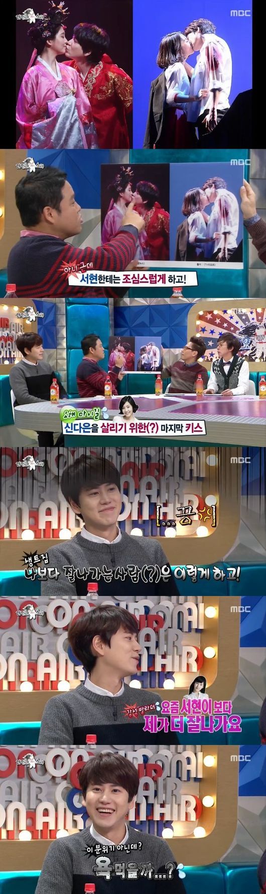 규현은 26일 오후 방송된 MBC 예능프로그램 '황금어장-라디오스타'(이하 '라디오스타')에서 뮤지컬 '해품달'에서 신다은과 키스를 한 것에 대해 "극 중 흐름이다"라고 답했다.