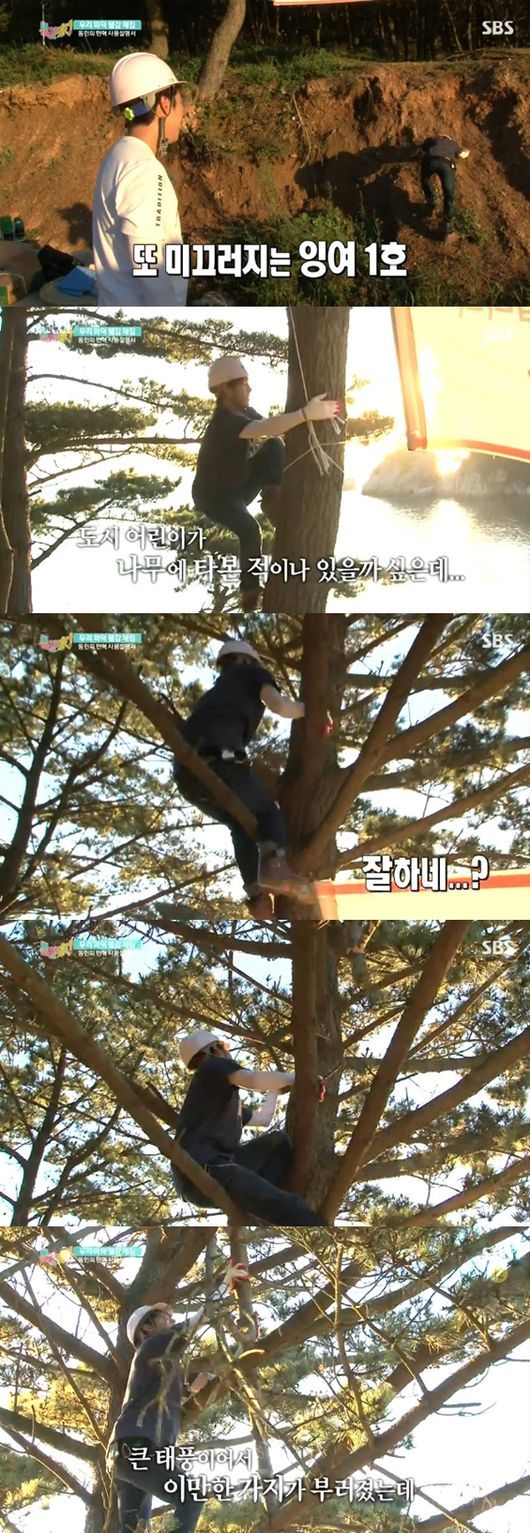 그러나 민혁은 어리바리한 모습과는 달리 능숙하게 나무에 올라 태풍에 부러진 나뭇가지를 잘라 땔감을 마련, 형들의 칭찬을 한 몸에 받았다.