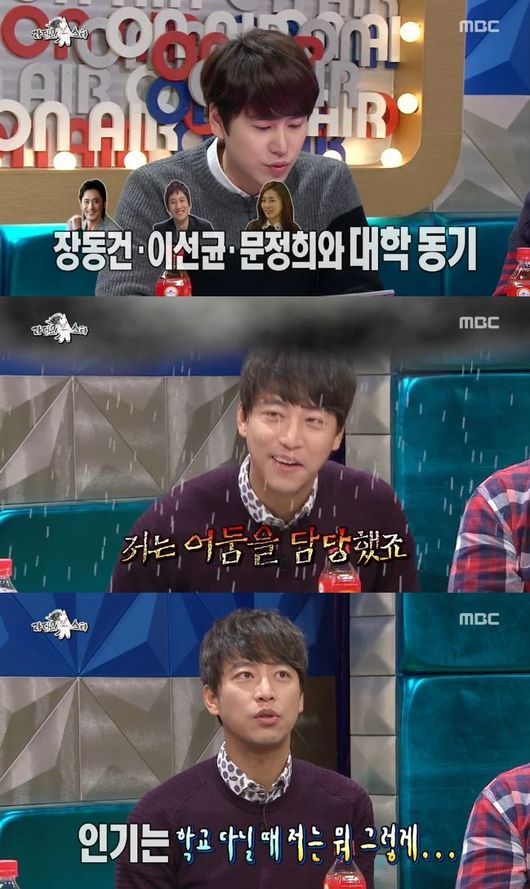 이에 "인기는 학교 다닐 때 동건이 형은 워낙 모르는 사람이 없었고, 선균이 인기가 많은 편이었다. 서글서글 두루두루 친하니까 목욕탕 발성으로"라고 언급해 웃음을 줫다.