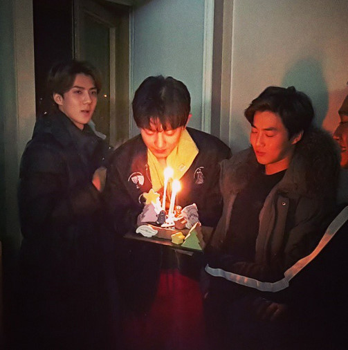 찬열은 27일 새벽 자신의 인스타그램을 통해 “나는 진짜 오늘 케이크 해줄지는 생각도 못했다. 멤버들 매니저형들 정말 너무너무 고맙고 사진은 내가 씻고 머리도안말리고 목에 수건까지 걸고 있지만 그래도 생일이고 그리고 너무 고마우니깐 올릴게. 많이 사랑해”라는 글과 함께 사진 한 장을 게재했다.