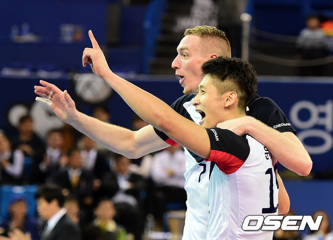 27일 오후 천안 유관순체육관에서 2014-2015 NH농협 V-리그 현대캐피탈과 OK저축은행의 경기가 열렸다.