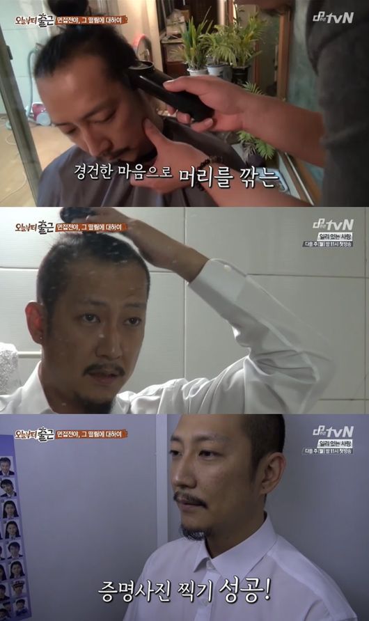 '오늘부터 출근'의 미노가 증명사진 촬영을 위해 집에서 직접 이발했다.