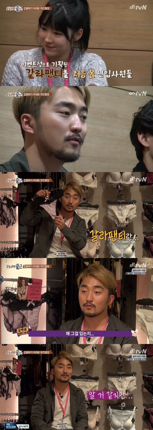 '오늘부터 출근'의 유병재가 갈라팬티를 보고 당황해했다.
