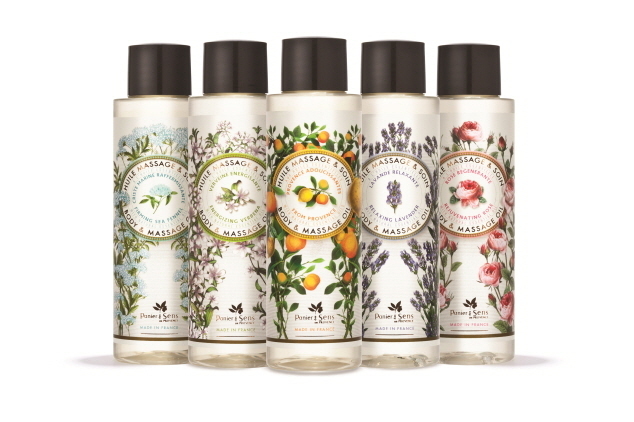 프랑스 뷰티 브랜드 빠니에 데 썽스(PANIER DES SENS)의 '바디&마사지 오일'은 번들거림이나 끈적임 없이 바로 흡수되는 드라이 타입 오일로, 역시 헤어부터 바디까지 모두 사용할 수 있는 올인원 제품이다. 저녁에 샤워 후 피부에 발라주면 천연 보디 오일로, 샴푸 후 젖은 모발에 발라주면 영양 가득한 헤어 에센스로 두루 활용 가능하다.