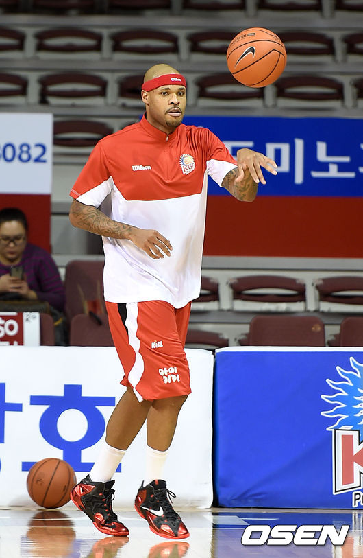 경기에 앞서 7년 만에 KBL로 돌아온 KGC 애런 맥기(35)가 훈련을 하고 있다.