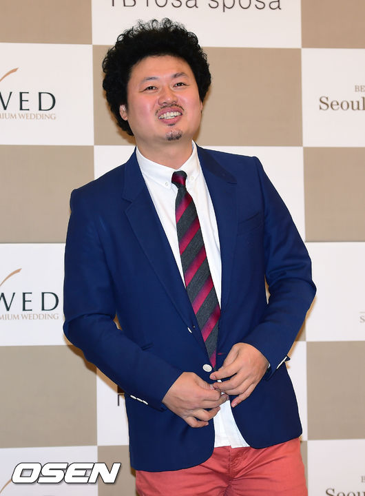 결혼식을 찾은 윤택이 포토타임을 하고 있다.