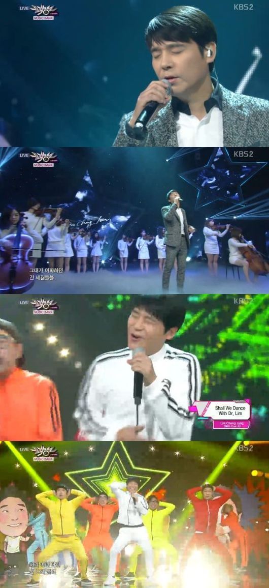 임창정은 28일 오후 생방송된 KBS 2TV '뮤직뱅크'에서 신곡 '친한 사람', '임박사와 함께 춤을'의 무대를 선보였다.