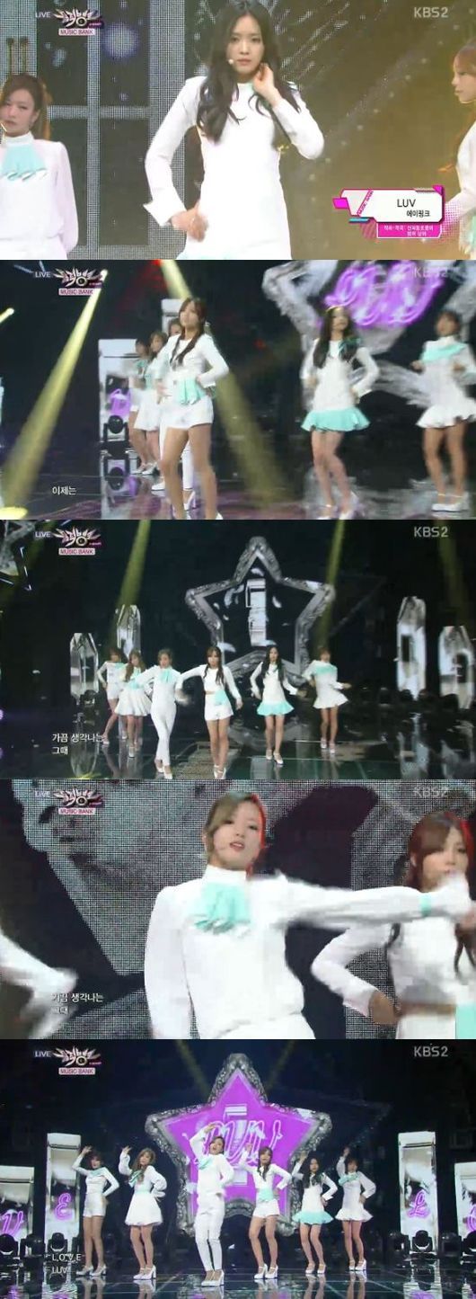 에이핑크는 28일 오후 생방송된 KBS 2TV '뮤직뱅크'에서 신곡 'LUV'를 열창했다.