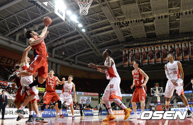 28일 오후 경기도 안양실내체육관에서 '2014-2015 KCC 프로농구' 안양 KGC와 서울 SK의 경기가 열렸다.