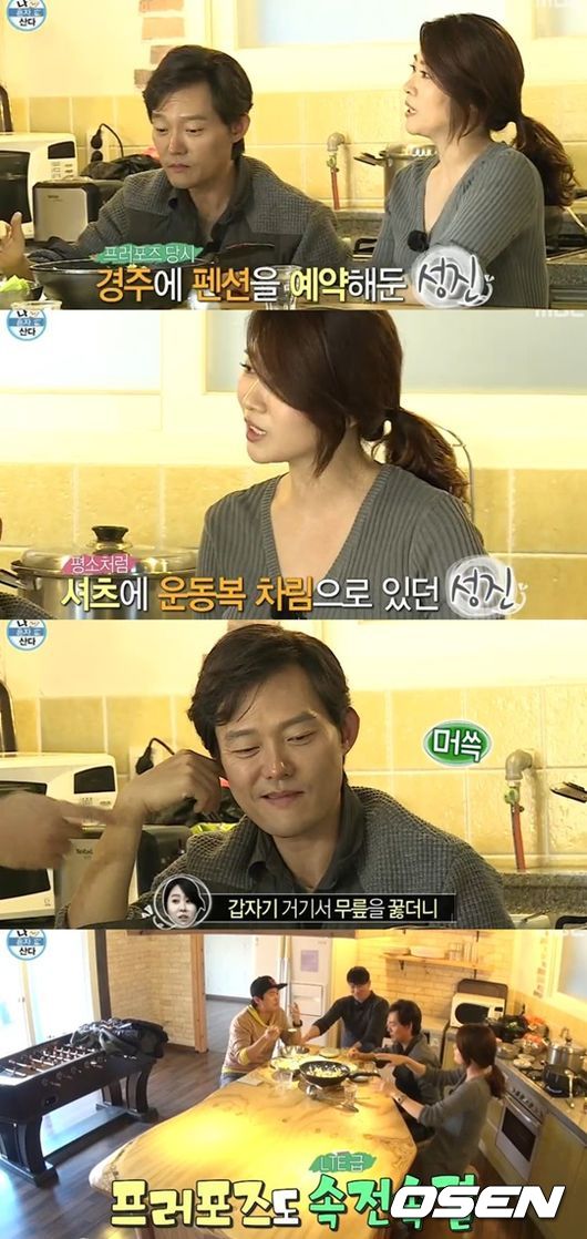 이어 "경주 펜션을 빌렸는데, 바베큐를 해먹는다고 불을 피우고 난리인 상황이었다. 그때 남성진씨는 난닝구 차림에 운동복을 입고 있었는데, 삼겹살을 굽다가 갑자기 무릎을 굻는 거다. 그러다 꽃다발을 주면서 속전속결이었다"고 말해 웃음을 유발했다.