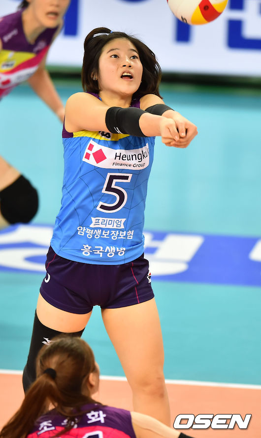29일 오후 인천 계양체육관에서 열린 '2014-2015 NH농협 V-리그' 여자부 흥국생명과 GS칼텍스의 경기, 5세트 흥국생명 한지현이 볼을 받아내고 있다.