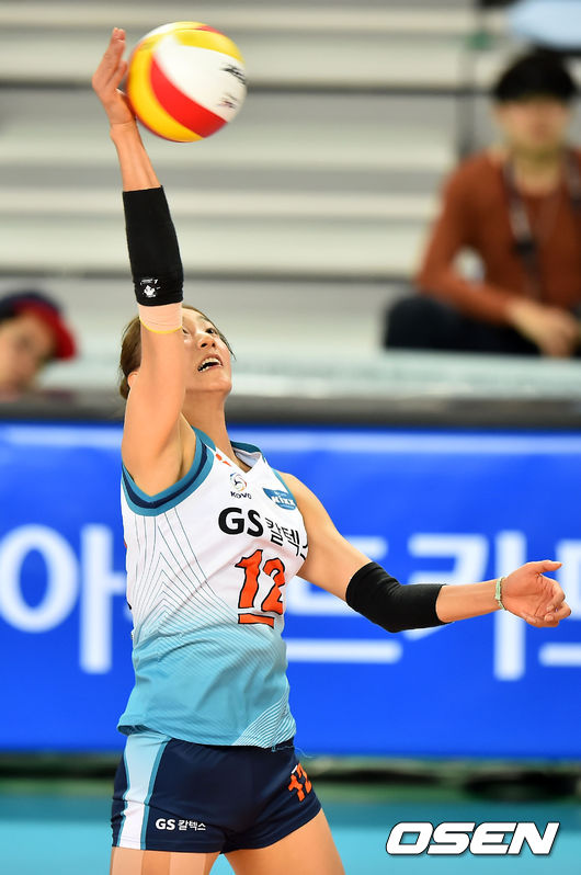 29일 오후 인천 계양체육관에서 열린 '2014-2015 NH농협 V-리그' 여자부 흥국생명과 GS칼텍스의 경기, 5세트 GS칼텍스 한송이가 강타를 날리고 있다.