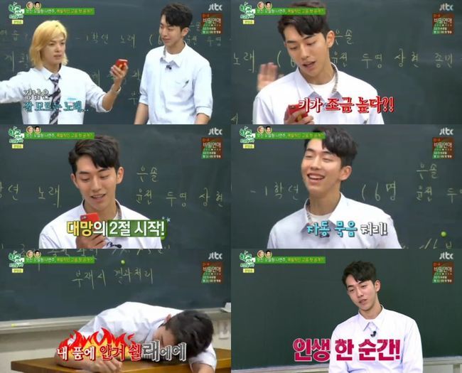 노래 초반에 남주혁은 감미로운 목소리로 여학생들의 마음을 사로잡았다. 하지만 뒤쪽으로 흘러가자 노래의 키가 너무 높은 느낌이 들기 시작했다. 결국 남주혁은 클라이맥스 부분에서 ‘자체 묵음’ 처리를 해 모두를 웃게 했다. 그리고 결국 다시 시도한 노래에서는 음이탈까지 해 교실을 웃음바다로 만들었다.