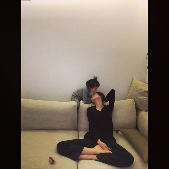 공개된 사진 속에는 쇼파 위에 편안한 자세로 누워 있는 엄태웅의 아내 윤혜진과 그에게 뽀뽀하려 다가가고 있는 딸 엄지온의 모습이 담겨있다. 특히 두 사람은 보는 사람마저 포근하게 만드는 따뜻한 분위기로 눈길을 끈다.