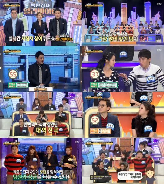 30일 방송된 JTBC '백만장자 엘리베이터'에서는 사전 모바일 게임을 통해 선발된 12명의 국민도전자와 연예인 도전자가 함께 팀을 짜서 방송 퀴즈쇼에서 결판을 짓는 내용이 전파를 탔다.