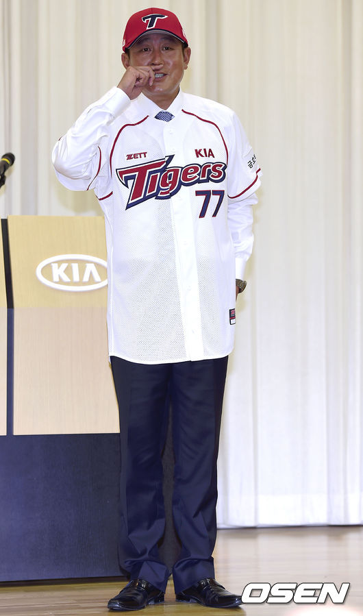타이거즈 8대 감독 김기태,'포토타임은 어색해~'