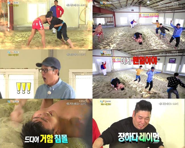 이날 방송에서 레이먼킴 팀은 소고기를 얻기 위해 씨름 선수 한 명만을 집중 공략했다. 김주혁, 정준영, 김종민 등 성인 남자 세 명을 상대한 씨름 선수는 떨어진 체력을 보였고 이후 등장한 레이먼킴은 엄청난 힘을 과시하며 그를 제압했다.