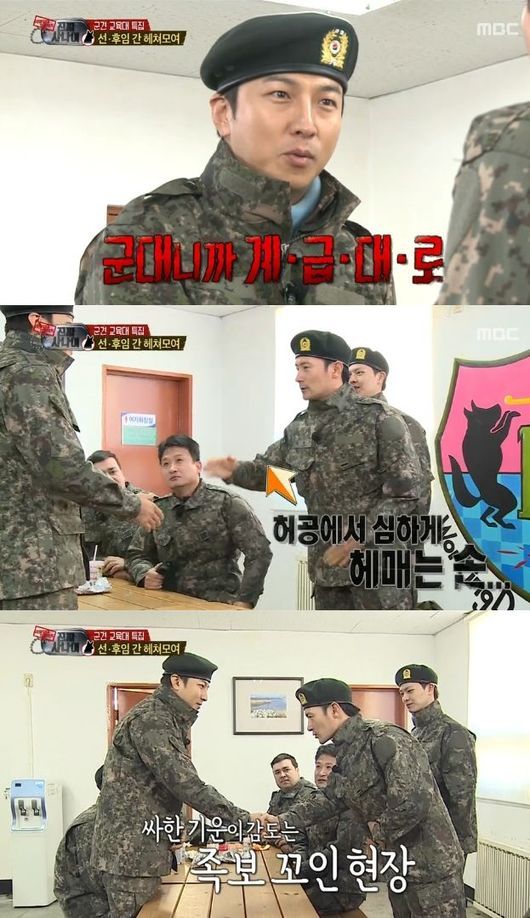이에 임형준은 허공에서 경례와 악수 중 헤매이는 모습을 보이다 악수를 했다. 박건형은 "배려는 여기까지다. 군대니까 계급대로 가자"라고 말해 임형준을 당황하게 만들었다.