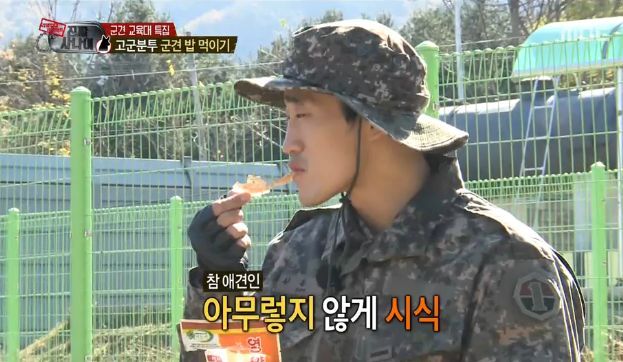 이에 선임은 놀랍다는 표정으로 "그럼 한 번 맛 보라"고 권했고, 김동현은 아무렇지도 않은 듯 군견의 쥐포를 먹어 눈길을 끌었다.