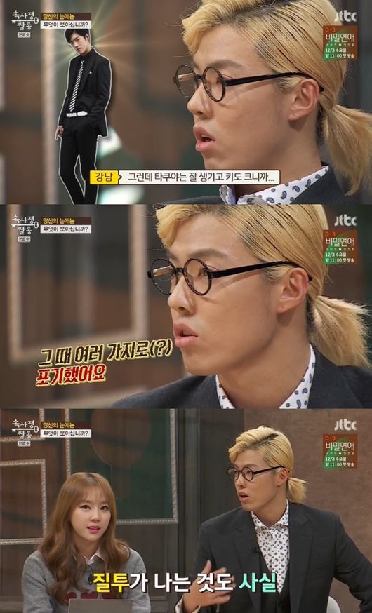 '속사정 쌀롱'의 강남이 그룹 크로스진의 타쿠야를 질투했다.